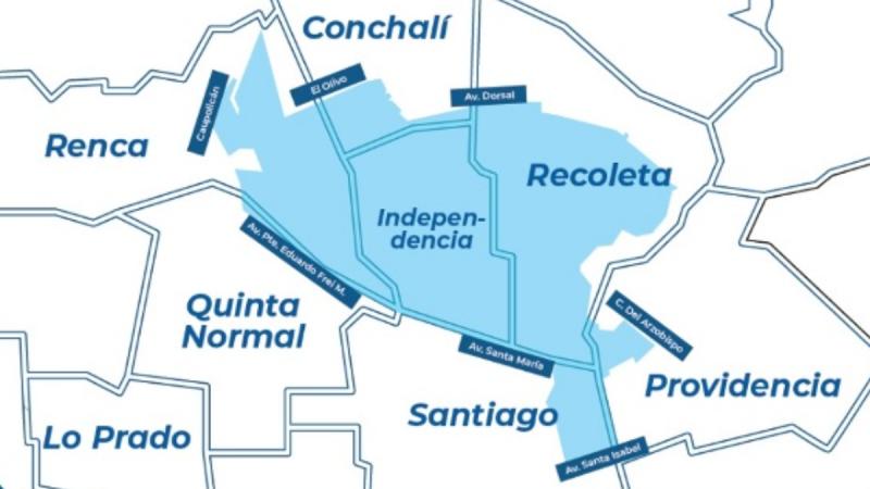 La interrupción de suministro afectará la totalidad de la comuna de Independencia, junto con zonas de Recoleta, Conchalí, Renca, Quinta Normal, Santiago y Providencia.