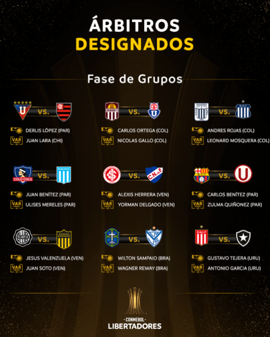 Colo Colo y Universidad de Chile conocieron a sus árbitros para sus partidos por la fecha 3° de la Copa Libertadores, la que arrancará el próximo martes 22 de abril.