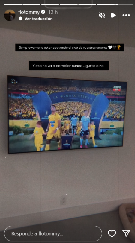 Así lo demostró Florencia Pouso, esposa del defensa que publicó una historia de Instagram viendo el duelo del Popular frente a Los Leopardos, incluyendo un desafiante mensaje.
