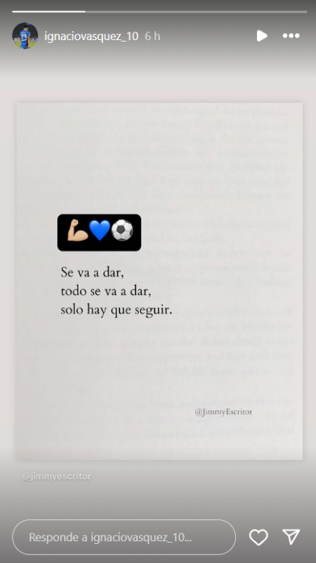 "Se va a dar, todo se va a dar, sólo hay que seguir", señalaba el texto, al que el habilidoso atacante le agregó emojis de músculo y un corazón azul.