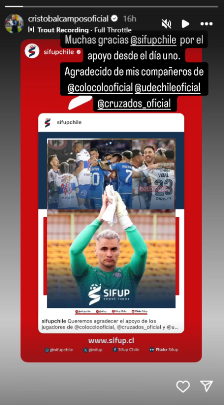 Universidad de Chile, Colo Colo y Universidad Católica realizaron un tremendo aporte en la recuperación de Cristóbal Campos, quien agradeció el gesto de los tres grandes.