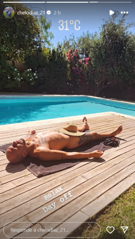 "Relax. Day off", escribió Carepato en una historia de Instagram, mostrándose tendido sobre una toalla a un costado de una amplia piscina.