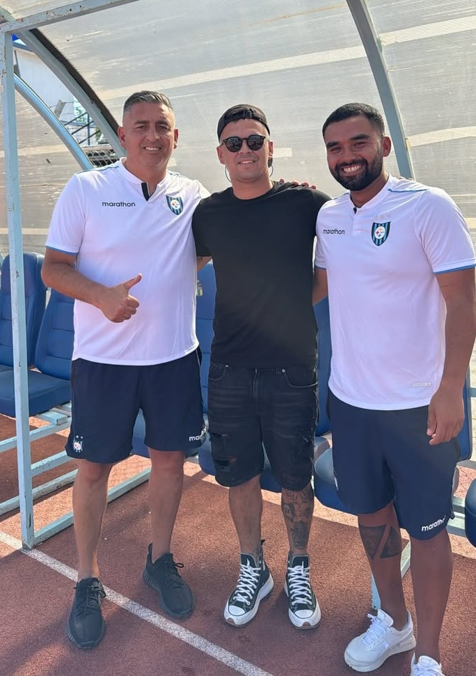 Antes de que iniciara el cotejo, el central fue a saludar al entrenador de Los Acereros Jaime García, con quien fue titular indiscutido por varias campañas en Ñublense.