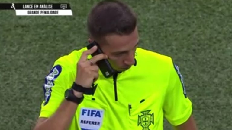 Una insólita situación este domingo en el partido entre el Porto y el Arouca en Portugal, luego de que el árbitro analizara una polémica jugada por un celular tras una interrupción en el VAR.