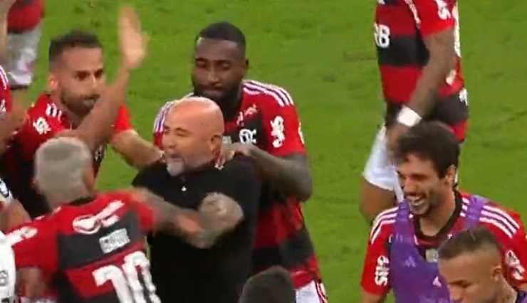 Palmetazos incluidos: El efusivo festejo de los jugadores del Flamengo con Jorge Sampaoli