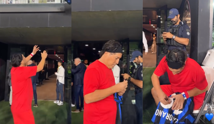 Tras el término del cotejo, Zamorano tuvo un noble gesto al firmarle una camiseta del Inter de Milán a un niño que estaba ansioso en la tribuna.