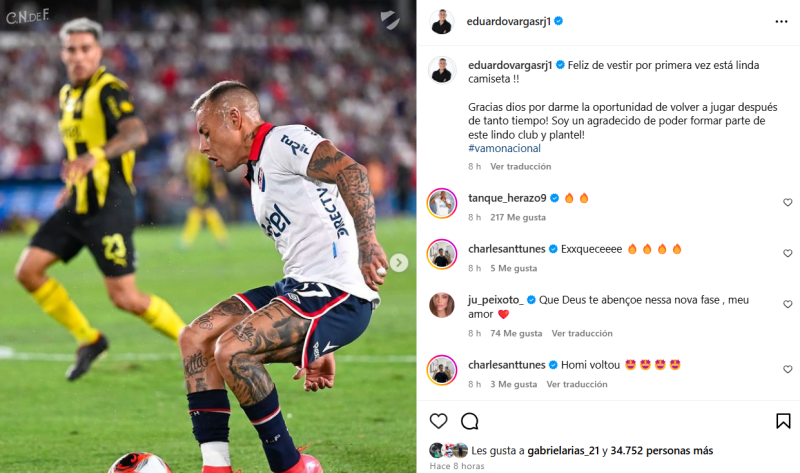 Luego de sumar minutos por primera vez en Nacional, Eduardo Vargas se manifestó en su Instagram con un sentido mensaje.