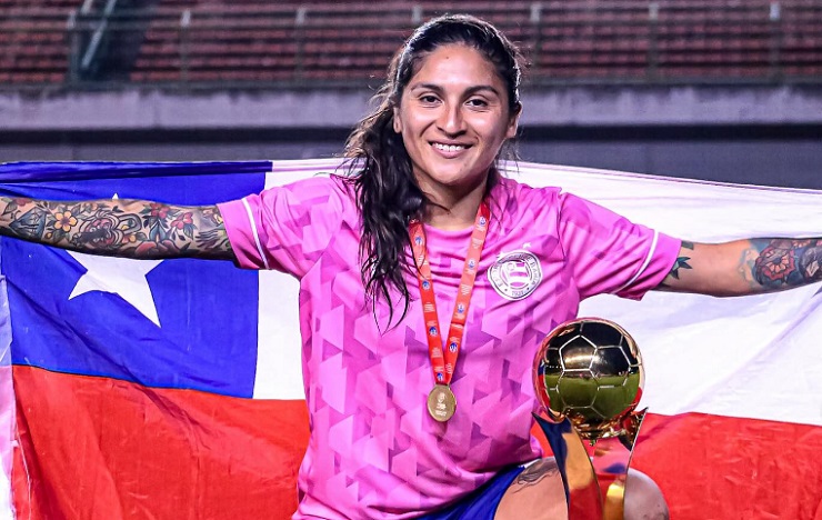 La seleccionada nacional no ocultó su felicidad y subió una emotiva publicación a sus redes sociales, donde posó con el trofeo, con su galardón personal y con una bandera chilena.