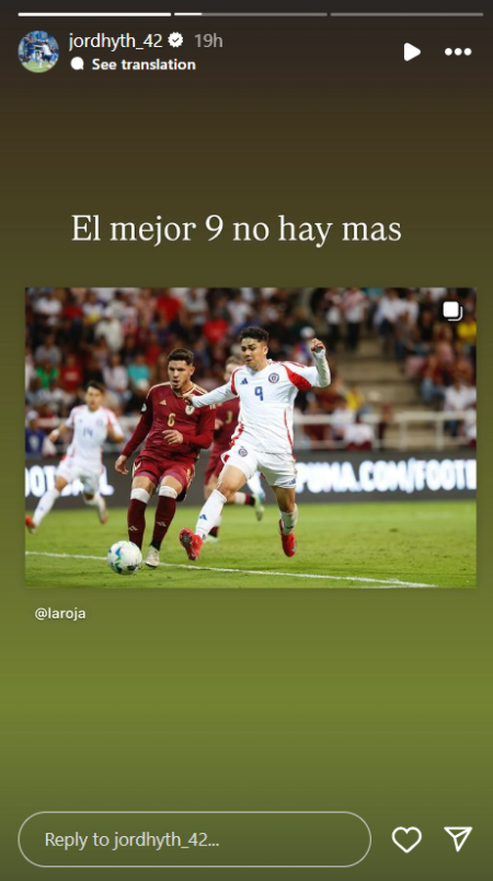 "El mejor 9, no hay más", escribió el antofagastino en una historia de Instagram, demostrando todo su cariño por el joven de 19 años.