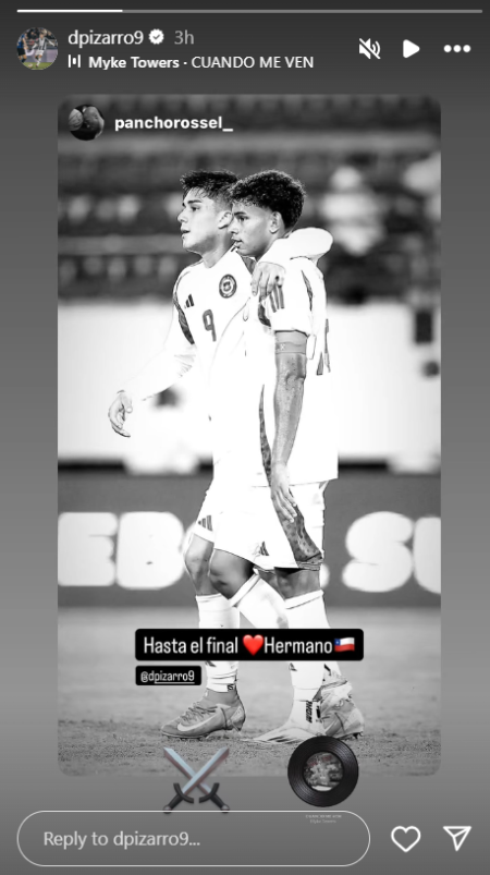 "Hasta el final, hermano", escribió el goleador del Sudamericano, imagen que fue replicada en la cuenta del ariete que milita en Italia.