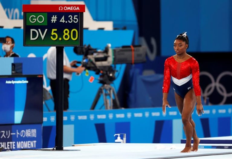 (EFE) – La gimnasta estadounidense Simone Biles quedó fuera de la final olímpica por equipos tras hacer solo el primer ejercicio, el de salto.