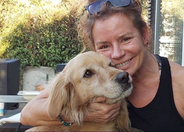En la imagen se puede ver a la ex rostro de matinales abrazar a su perrita Sol, sin nada de maquillaje, de la misma forma que aparece en varias de sus fotos, a veces provista de unas gafas. No le teme a verse natural.