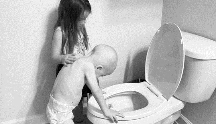 Sobre la conmovedora imagen que muestra a Beckett apoyado sobre un inodoro y su hermana frotándole la espalda, la madre comenta: “No sabía lo que estaba sucediendo, pero sabía por experiencia que cuando estaba enferma, le acariciaríamos la espalda y la ayudaríamos a superarlo”.