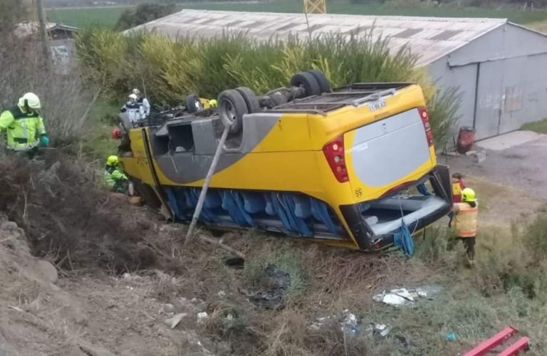 Cerca de las 07:21 de este jueves, un bus que transporta a un grupo de estudiantes y dos adultos volcó en la Ruta D-505 rumbo a Cerrillos, en la comuna de Ovalle, región de Coquimbo.