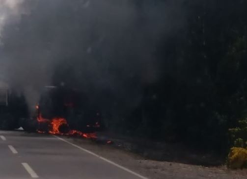 Esta vez un camión que transportaba áridos fue robado y luego incendiado en medio de la ruta P72-S, específicamente entre los kilómetros 18 y 19, sector de Atiquina, según informó la cuenta en Twitter de Conecta TV.