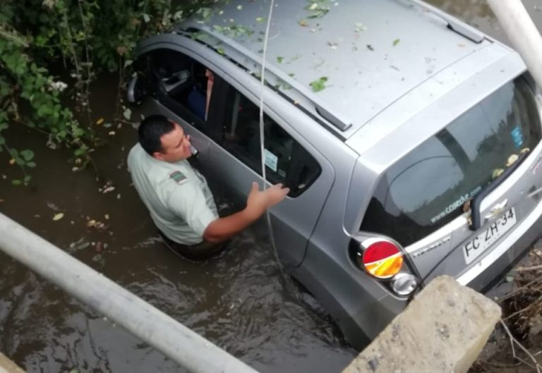 Un amigo en su camino: Carabineros rescató a dos mujeres que cayeron en su auto a un canal de regadío