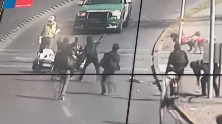 Violento registro muestra cómo grupo de encapuchados atacó con piedras a motorista de carabineros