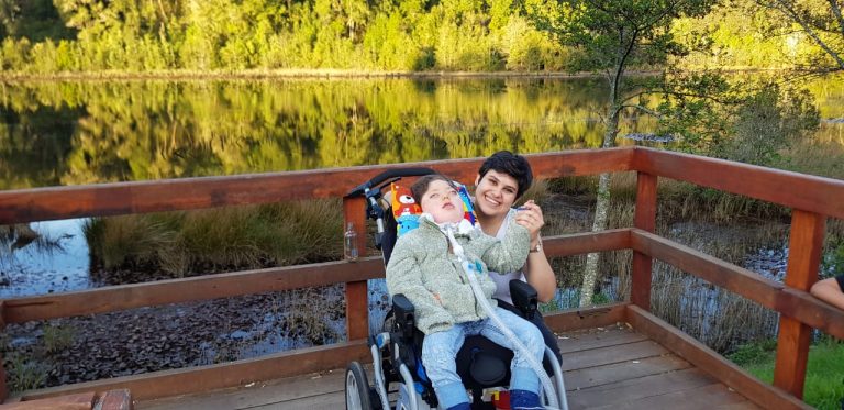 “Esta enfermedad no la conoce casi nadie, yo no la conocía antes de que mi hijo naciera. Y ellos tienen derecho a vivir, a vivir bien, lo mejor que se pueda. Y si el Estado no cubre ese derecho a la vida, ¿quién? ¿cómo vamos a estar todo el tiempo haciendo rifas y bingos para mejorar un poquito a nuestros hijos? Estoy al cuidado de mi hijo 24/7, soy mamá soltera. Y si espero al hospital, recién el próximo año puedo pedir una hora para que lo evalúen. No hay protección”, sostiene Evelyne.