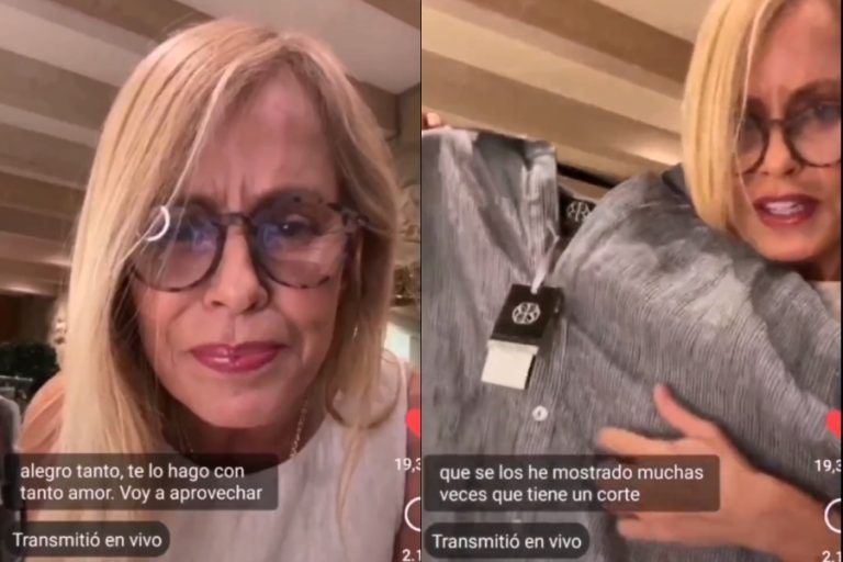 Luego, sosteniendo un vestido rayado con una etiqueta que indicaba su tamaño, dijo: “Tengo en los tres colores. Para todas las gorditas preciosas de mi corazón. Para que no me vuelvan a decir tonteras de que yo no las quiero. Este vestido yo se los he mostrado muchas veces que tiene un corte maravilloso acá, para que no sea como una carpa que te cae así”.