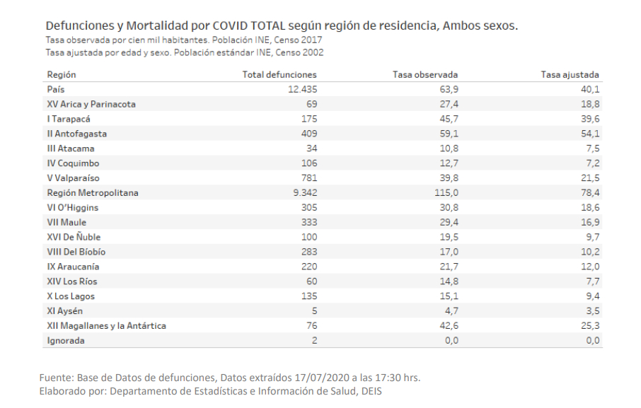 Durante la mañana de este domingo, el Ministerio de Salud publicó el 34° Informe Epidemiológico por coronavirus en Chile, con corte hasta el 17 de julio, y se informó que hay más de 12 mil muertes confirmadas y sospechosas en total.