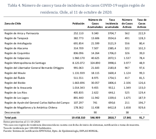 El mismo reporte señala que las muertes por COVID-19 habrían alcanzado las 18.058 al 10 de octubre, si se consideran aquellas con y sin confirmación de laboratorio.