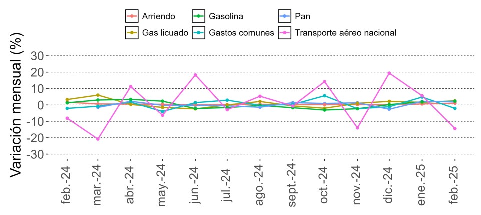 El transporte aéreo nacional y los gastos comunes son algunos de los ítem que mayor variación en precio sufrieron en el segundo mes del 2025, según el informe del INE.