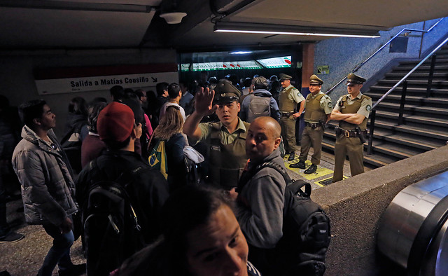 Continúan las jornadas de protestas por el alza de pasajes en sistema de transporte de la capital y en redes sociales continúan los llamados a la ciudadanía a evadir pagar el pasaje en el servicio de Metro.
