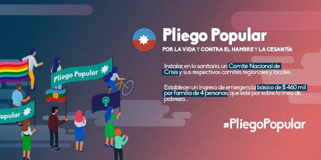 Además, proteger a las mujeres y niñas de la violencia de género, crear un comité de emergencia alimentaria, que controle los precios de los productos de primera necesidad y defender el proceso constituyente, cuyo plebiscito debió ser postergado debido a la crisis sanitaria por el COVID-19.