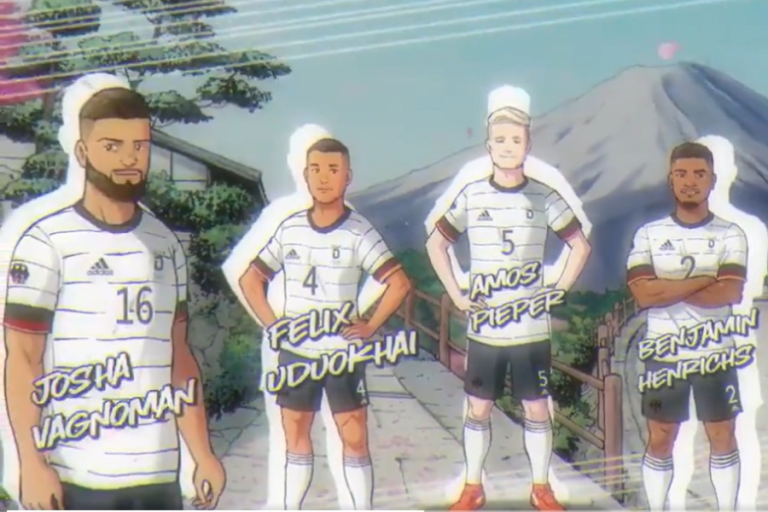 Al tratarse de un megaevento que se llevará a cabo en Japón, desde la federación germana quisieron anunciar a los jugadores comparándolos con los históricos dibujos de Yōichi Takahashi.