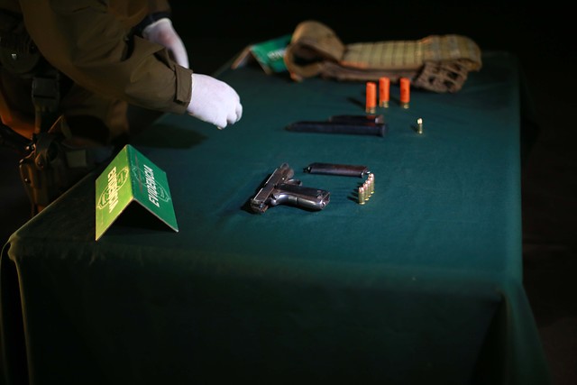 Por lo mismo, un equipo del GOPE logró detener a los sujetos en uno de los domicilios allanados. La policía además logró la detención de 8 individuos (1 mujer y 7 hombres), y se recuperó también un chaleco antibalas y una pistola calibre 45.
