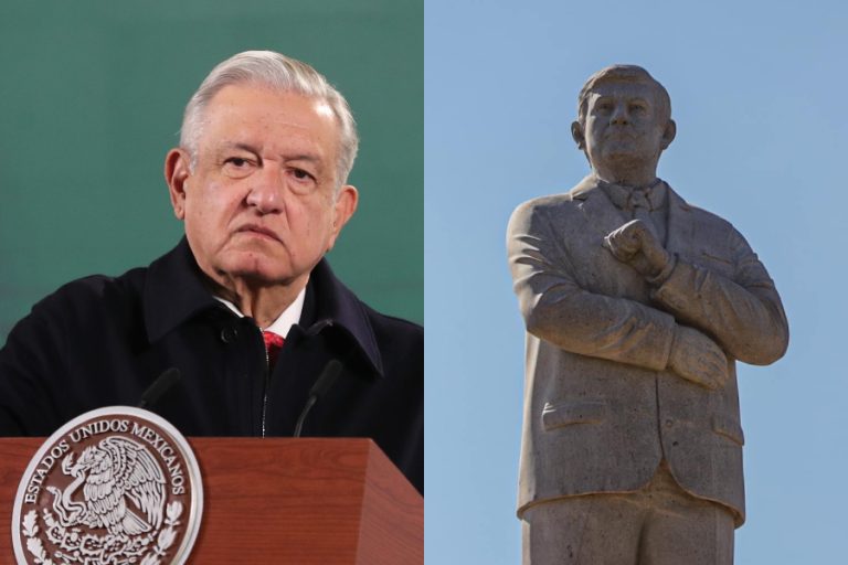(EFE) – Una estatua del presidente de México, Andrés Manuel López Obrador, recién revelada en el municipio de Atlacomulco, en el Estado de México, al centro del país, fue derribada la madrugada de este sábado.