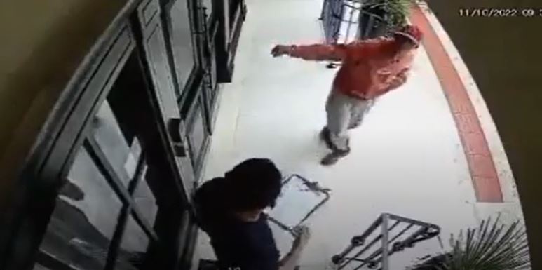 Cámaras de seguridad revelaron que producto del impacto, el sujeto se desplomó en el suelo, falleciendo en ese mismo lugar.