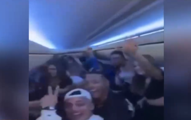 En las imágenes difundidas se puede ver al grupo de rostros televisivos celebrando sin mascarillas ni distancia social. “Fue tan violento y peligroso que los auxiliares de vuelo se refugiaron en el fondo del avión durante todo el vuelo”, señaló una persona que presenció el hecho.