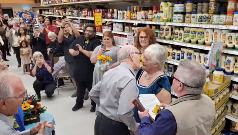 “No tenemos tantos años más”: Adultos mayores se casaron en el mismo pasillo del supermercado donde se conocieron
