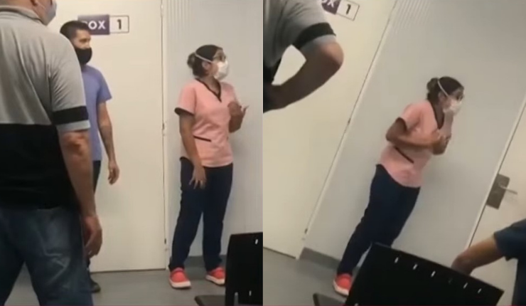 Dos hombres interpelaron a la trabajadora de un hospital acusando la demora en la toma de exámenes PCR. “Estoy haciendo lo que puedo, no soy un pulpo”, dijo la funcionaria de la salud.