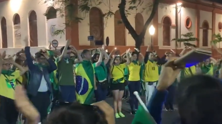 En un video que rápidamente se difundió en las redes sociales se puede ver a los seguidores del actual mandatario brasileño formar un círculo, mientras que todos sostienen sus celulares en la cabeza con el flash encendido para hacer señas.