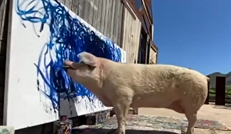 “Pigcasso”: Cerdo rompe todos los récords tras realizar millonaria venta de un cuadro