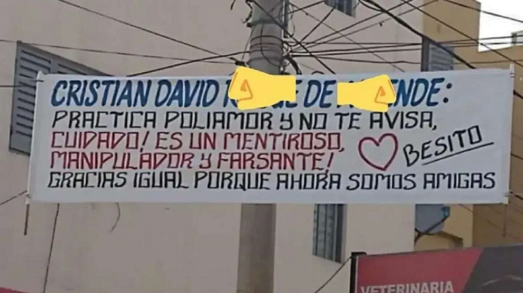“Practica poliamor y no te avisa. ¡Cuidado! Es un mentiroso, manipulador y farsante. Gracias igual porque ahora somos amigas, besito”, dice la frase dirigida a Cristian David y publicada por el sitio Only in Córdoba.
