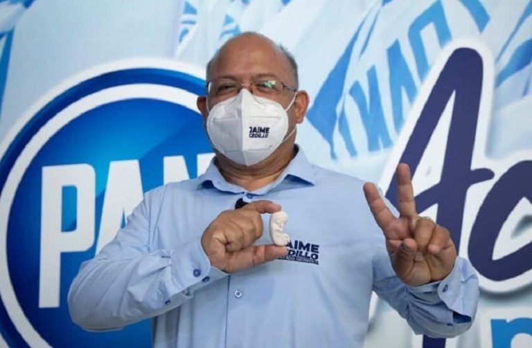 (EFE) – El candidato al Congreso de Jalisco (oeste de México) Jaime Cedillo, del derechista Partido Acción Nacional (PAN), hace campaña repartiendo pequeñas figuras que representan fetos para demostrar que se opone al derecho al aborto.