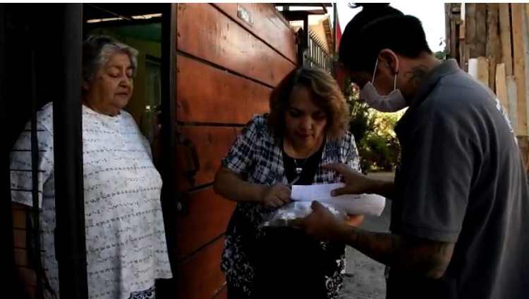 Otra de sus vecinas, alertada por la presencia de los funcionarios de salud de la Municipalidad de Padre Hurtado, también alaba la iniciativa que la autoridad local ha implementado para que los adultos mayores, que están en cuarentena, puedan tener acceso a sus medicamentos, entre otros bienes básicos gracias al reparto.