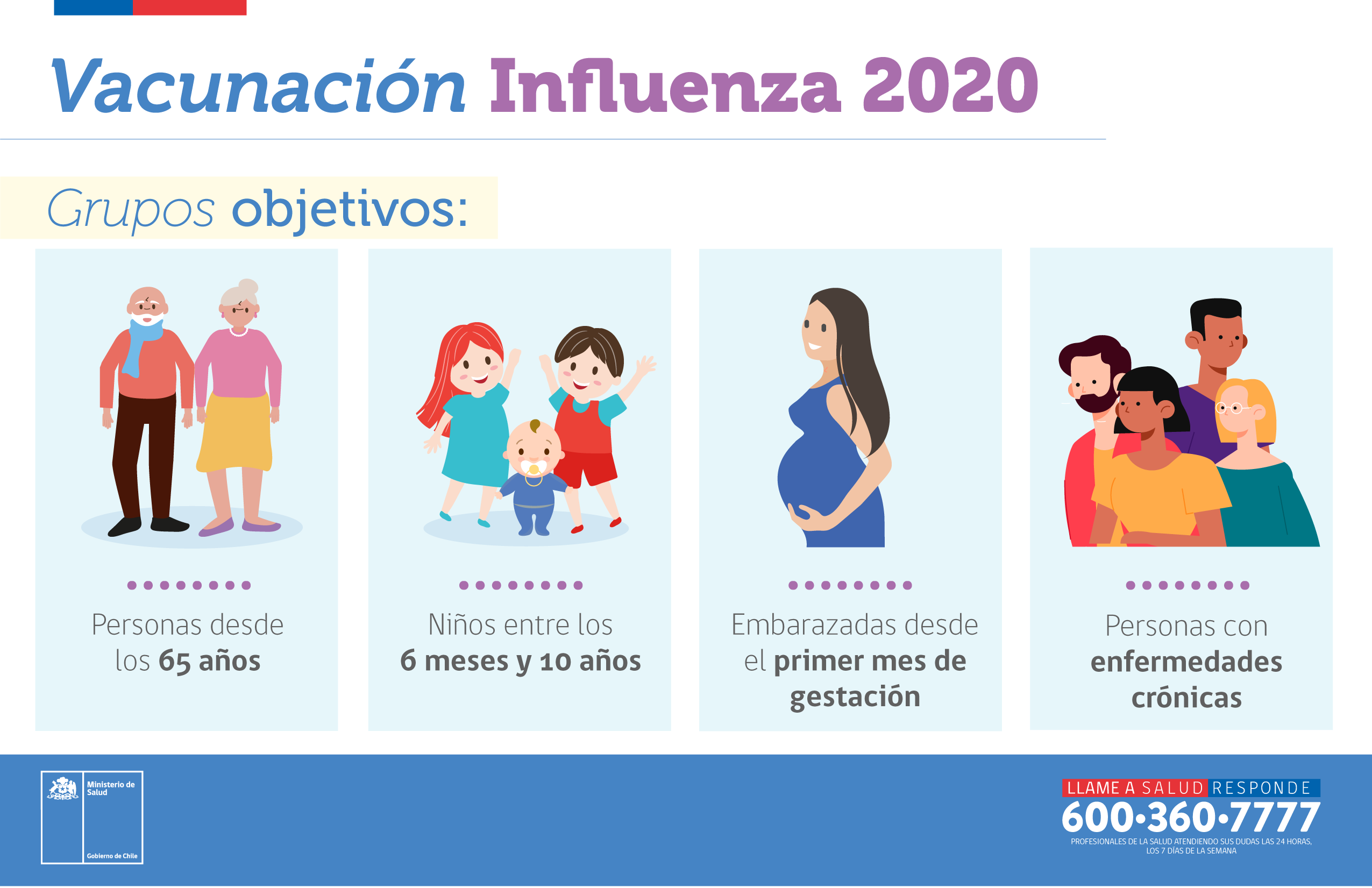Este año se vacunará a todas las mujeres embarazadas, los niños de hasta 10 años, personas con enfermedades crónicas y quienes tienen más de 65 años. Desde el Minsal aclararon que las inyecciones son gratuitas, no necesitan de orden médica y estarán disponibles en todos los centros de vacunación primarios.
