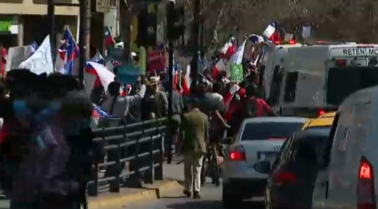Según información preliminar de Carabineros, cerca de 200 adherentes interrumpieron el tránsito, luego de reunirse a eso de las 11:30 horas en el frontis del Teatro Municipal de Las Condes.