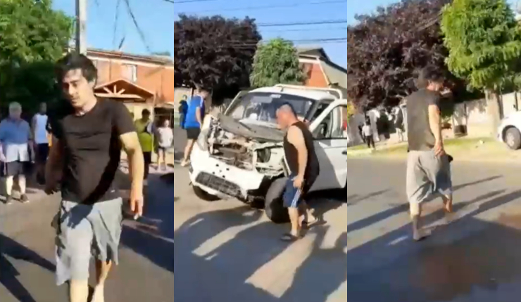 Un conductor en estado de ebriedad impactó con un poste de luz en la comuna de Maipú, mientras manejaba a evidente exceso de velocidad. El accidente se registró el pasado domingo a pocos metros del Parque Tres Poniente, que a esa hora estaba repleta de familias y niños. De acuerdo a registros, el hombre intentó volver a duras penas al volante pero los mismos vecinos del sector se lo impidieron.