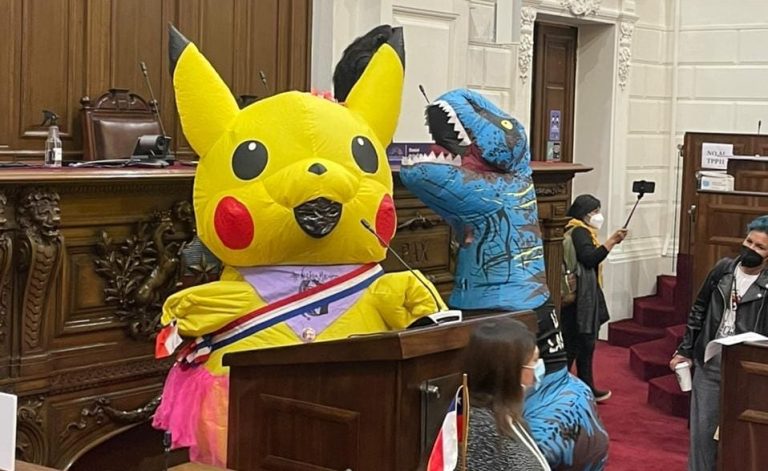 Constituyente Giovanna Grandón entró al ex Congreso Nacional disfrazada de “Tía Pikachú”