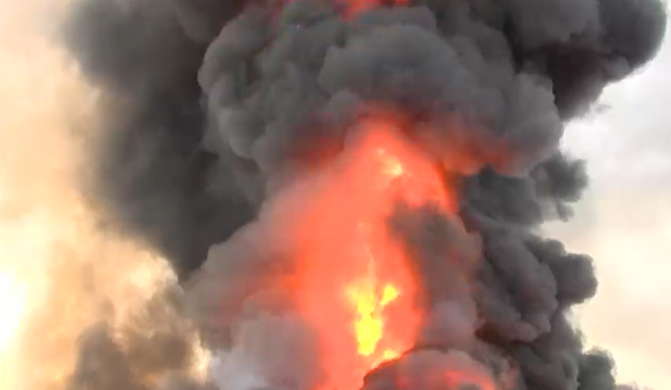 Un gran incendio se produjo este lunes en una fábrica de pinturas ubicada en Quilicura, específicamente en calle Luis Olea con Américo Vespucio.