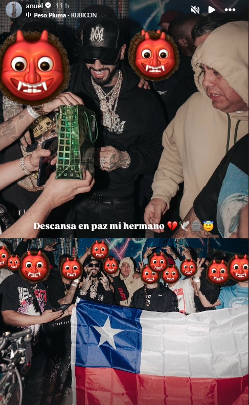 En sus historias de Instagram, Anuel compartió una imagen en la que se le muestra abriendo un regalo, otra junto a un grupo de personas -con los rostros tapados- y la tercera acariciando la cabeza de Acevedo.