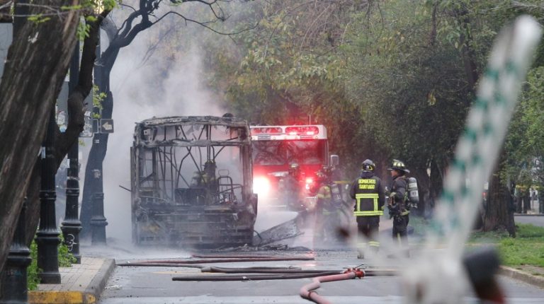 Tras quema de buses por overoles blancos: Carabineros aseguró que hay una “planificada estrategia”