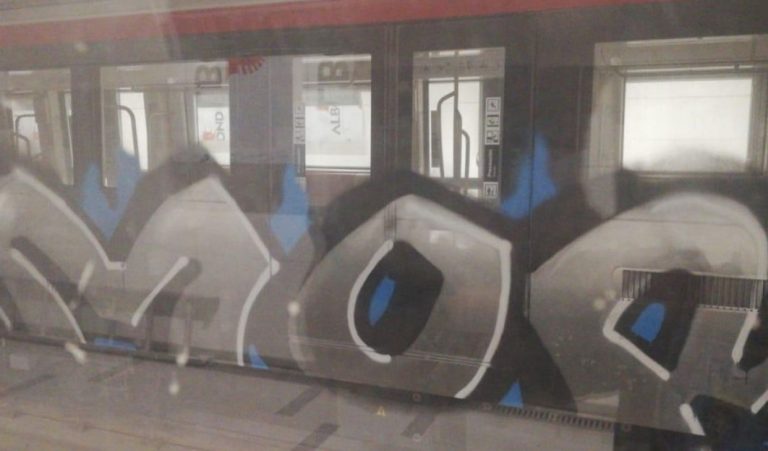 Aunque faltan algunos días para que sea presentado a la comunidad, la nueva Línea 3 ya registra sus primeros daños: un vagón apareció rayados en la estación Monseñor Eyzaguirre.