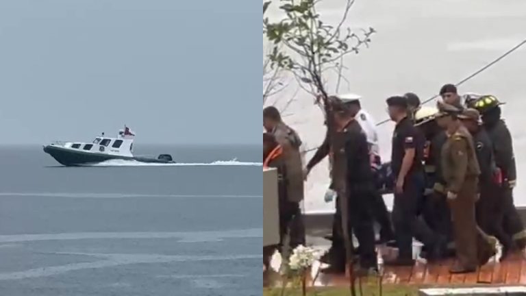 Posteriormente, se puede ver el arribo de la embarcación donde el Cuerpo de Bomberos del Lago Ranco, Carabineros y la Armada reciben al ex jefe de Estado ya fallecido, siendo cargado en una camilla rígida.