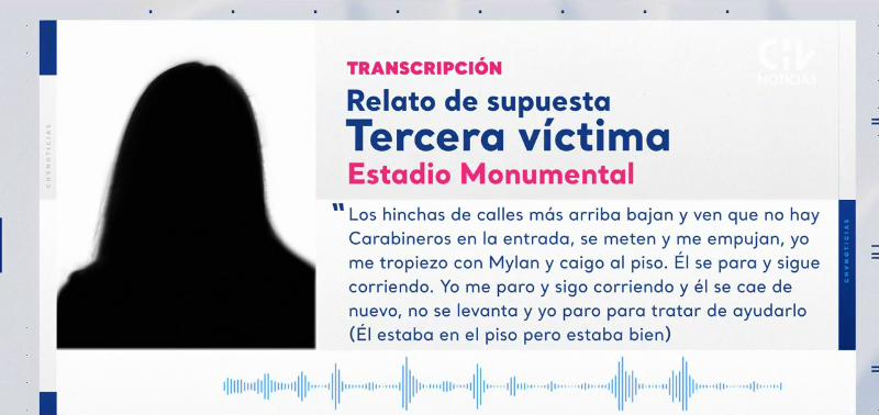Reportajes de CHV Noticias tuvo acceso exclusivo al relato íntegro de la supuesta tercera víctima de atropello a las afueras del recinto deportivo. Entre otras cosas, detalló haber visto a Mylan y Martina, los dos fallecidos esa noche.